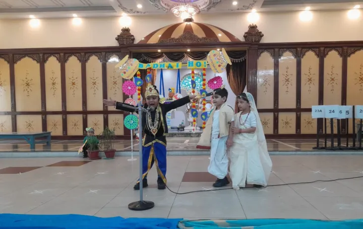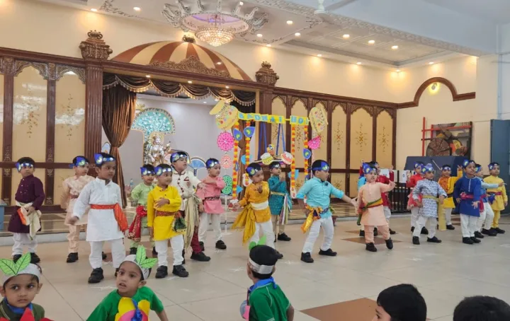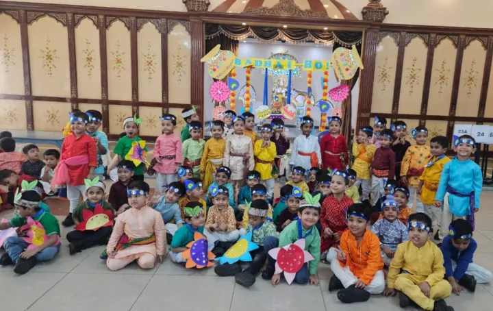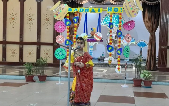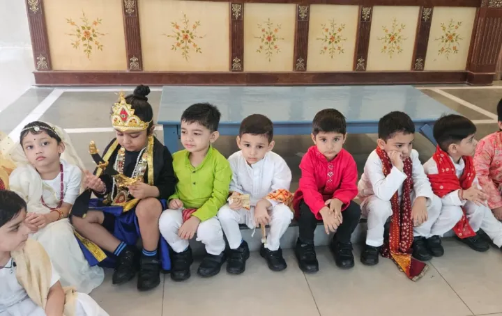 On 23rd August, the tiny tots of Upper Nursery joyously celebrated Janmashtami with great enthusiasm. The young children were beautifully dressed as characters like Devaki, Vasudeva, Nand, Yashoda, Kansa, Krishna, and other significant figures. They participated in a short skit that depicted the story of Krishna's birth, which was narrated and acted out by these little wonders. Their enchanting dance performances captivated the audience, leaving everyone spellbound. The event was a delightful blend of learning and fun, allowing the children to connect with their cultural heritage while enjoying the festivities. The celebration not only enhanced their understanding of the significance of Janmashtami but also gave them an opportunity to showcase their talents in a creative and joyful manner. It was a memorable day filled with smiles, devotion, and joy.