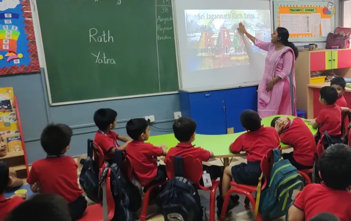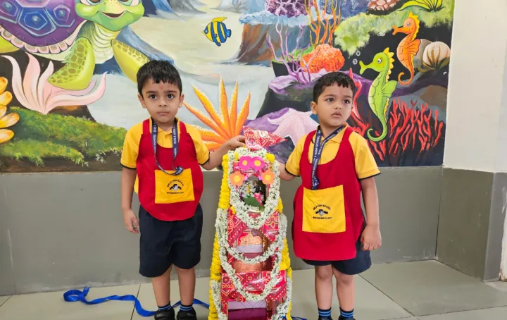 The Upper Nursery students at Birla High School celebrated Rath Yatra with great enthusiasm. The children joyfully chanted “Jai Jagannath” and pulled their own decorated chariots. Additionally, they were engaged in a craft activity, creating colourful chariots using different shapes.