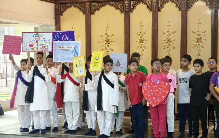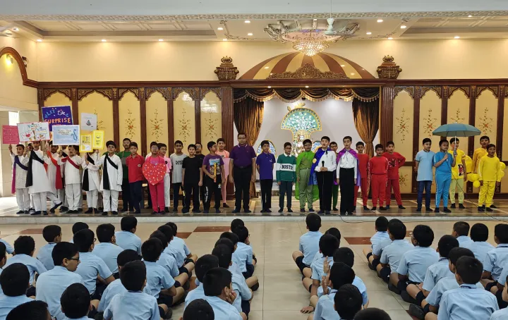 On 2nd July 2024, the students of Class VA presented a special assembly titled "The Journey to a Happy Heart," celebrating emotional well-being. Narrators Abhiraj Chawla and Anant Zutshi introduced the audience to different emotions like Joy, Sadness, Anger, Calmness, Surprise, Fear, and Love through engaging role-plays, props, and lively performances. A heartfelt song and dance emphasized accepting and balancing all emotions to foster empathy and harmony. Each audience member received a heart-shaped card with a positive message, leaving everyone uplifted and united.