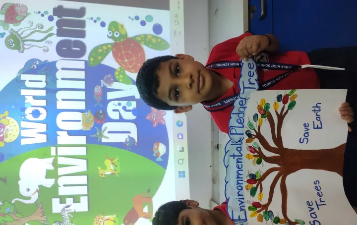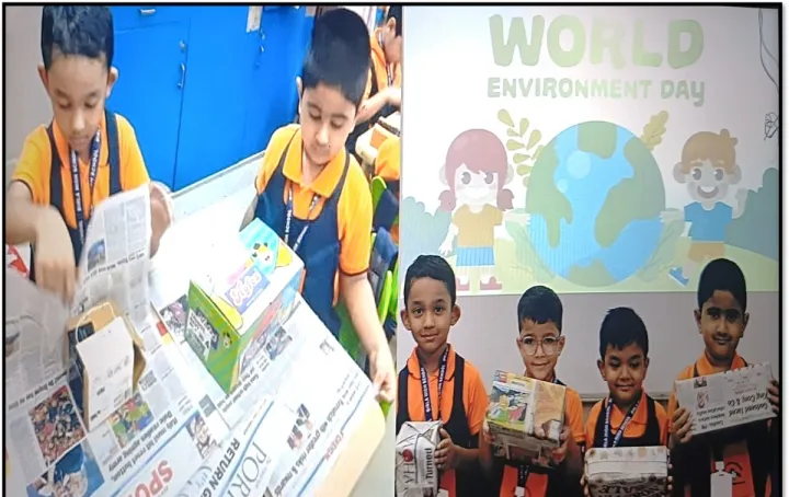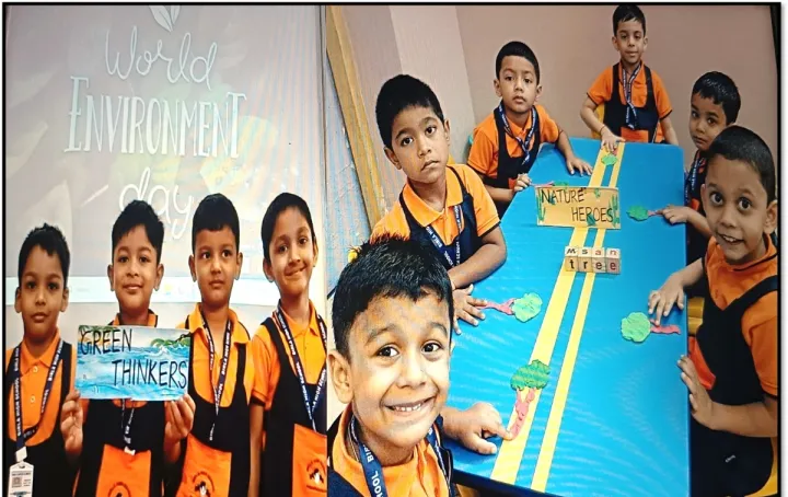 On Environment Day, the young learners of Class Lower Kindergarten were engaged in a series of enriching activities aimed at fostering environmental awareness. The day's event began with a viewing of an enlightening documentary on Environment Day, which was followed by a fun and interactive quiz to reinforce their learning. Subsequently, the students participated in various hands-on activities where they were engaged in making the lifeline of the Environment 'trees' using play dough and palm printing techniques as well as the young Kindergarteners were taught to reuse old boxes and newspapers by creatively wrapping them as gift boxes. The celebration concluded with the students taking an oath to commit to saving the environment. The Environment Day activities significantly enhanced students' environmental awareness, providing them with a foundational understanding of the importance of the day and the necessity of protecting our planet. They developed practical skills in creatively using everyday materials, such as old boxes and newspapers, which promoted habits of recycling and waste reduction. Additionally, the oath-taking ceremony instilled a sense of environmental responsibility in the students, encouraging them to adopt and maintain environmentally friendly practices from an early age.