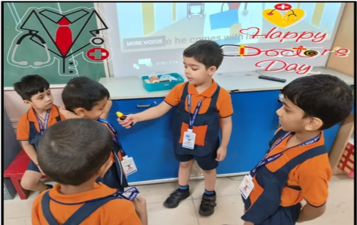 National Doctor’s Day is celebrated every year on July 1st to commemorate the invaluable contribution of Dr. Bidhan Chandra Roy in the field of medicine as well as to honour the selfless and tireless service the heroes in white coats provide in the well-being of the individual in the society. The theme for the celebration of this special occasion in 2024 is “Healing Hands, Caring Hearts” which highlights the dedication, compassion, and empathy that doctors bring to their medical practice, underscoring their pivotal role in saving the lives of the patients. The young doctors of LKG and UKG in Birla High School enacted the role of the doctor to become responsible for helping people maintain good health and providing valuable advice on living healthier and active lives.